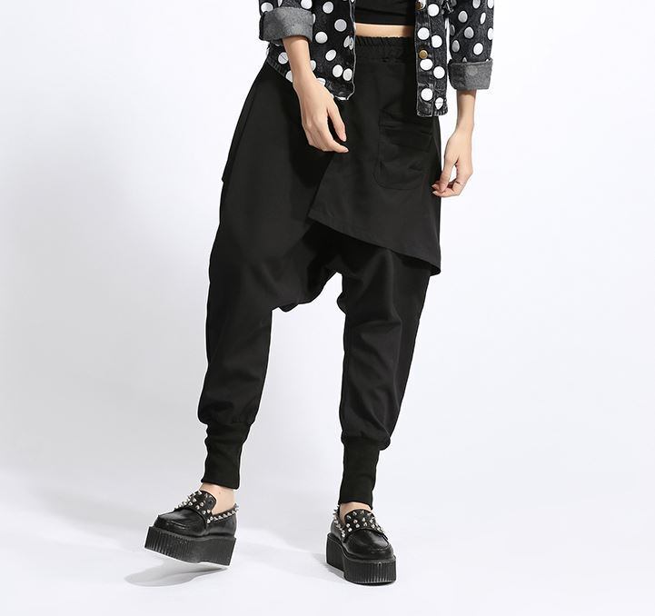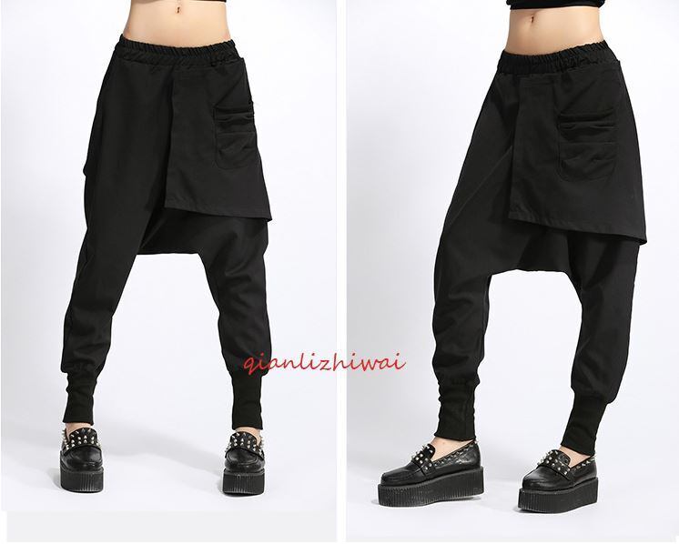 「ALL-CHAMP」サルエルパンツ カジュアルパンツ ガウチョ レディース メンズ ユニセックス 黒 ブラック モード オルチャン 韓国ファッション 3