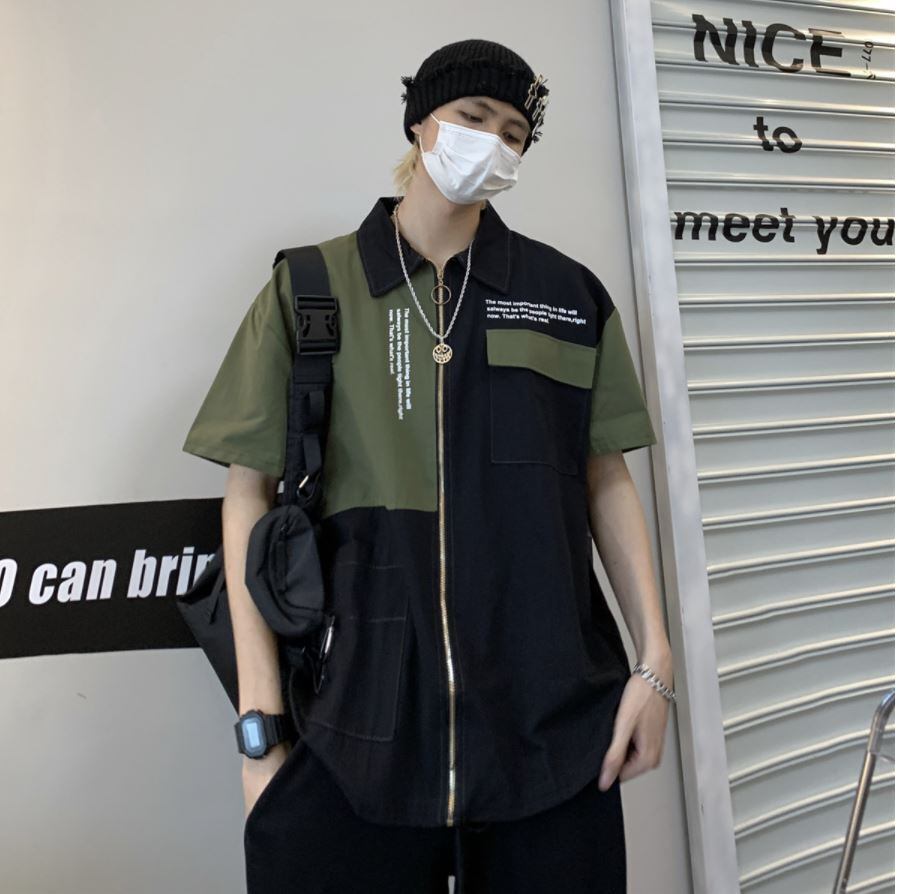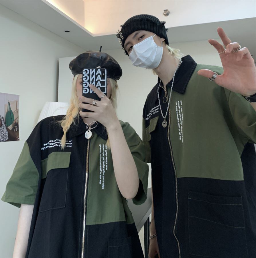 「ALL-CHAMP」ジャージ シャツ 半袖 アシンメトリー ユニセックス カジュアル 韓国ファッション 36